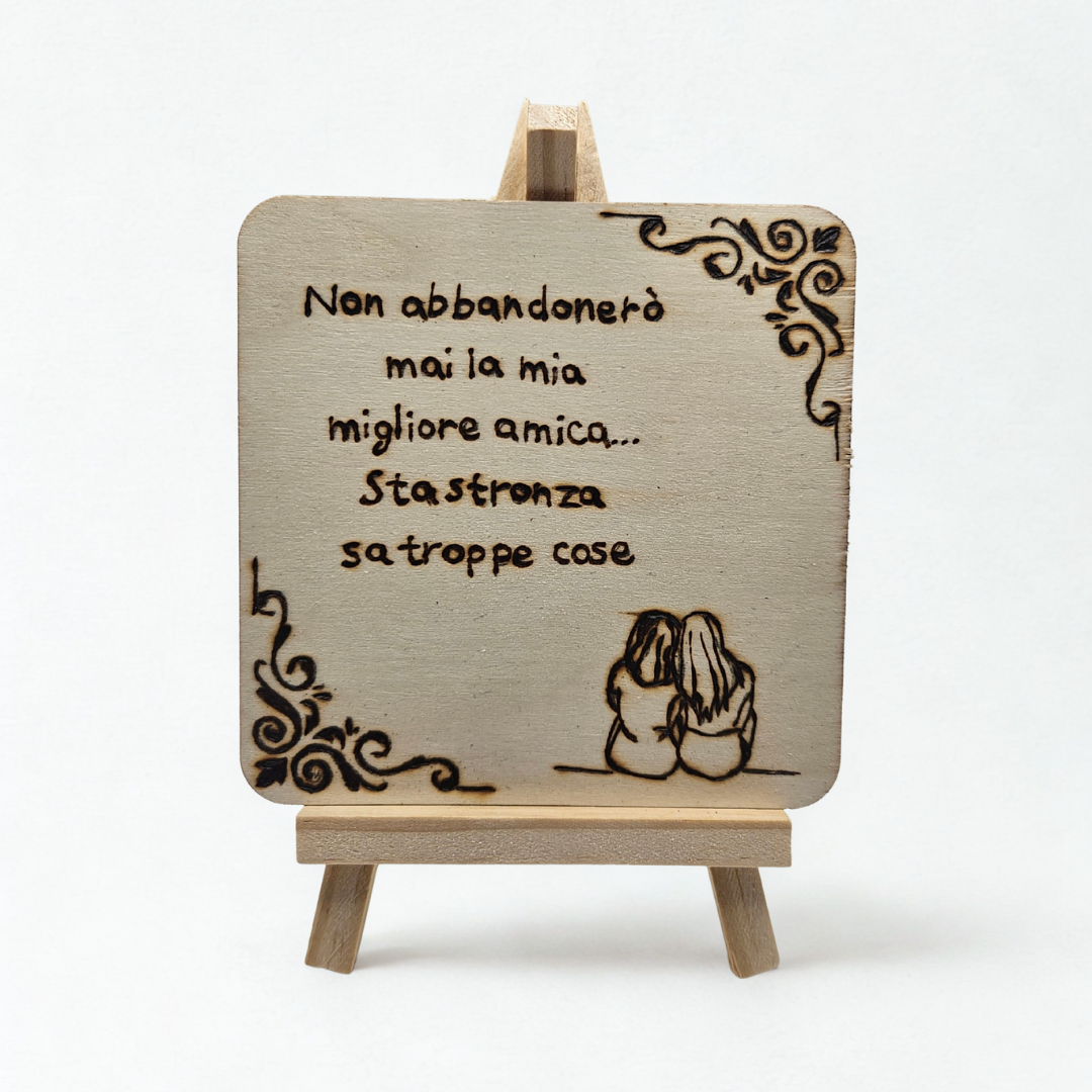 Tavoletta in legno “Non abbandonerò mai la mia migliore amica... sta stronza sa troppe cose” – con cavalletto
